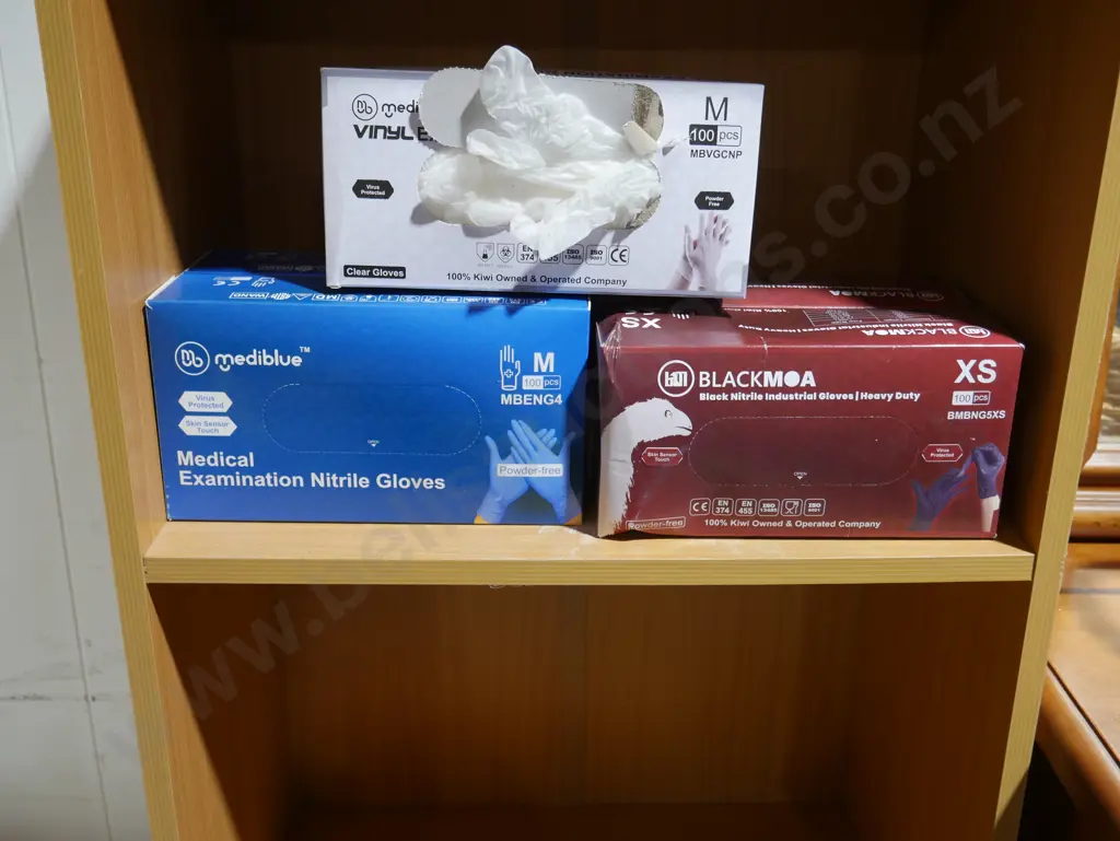 Boxes of vinyl gloves
