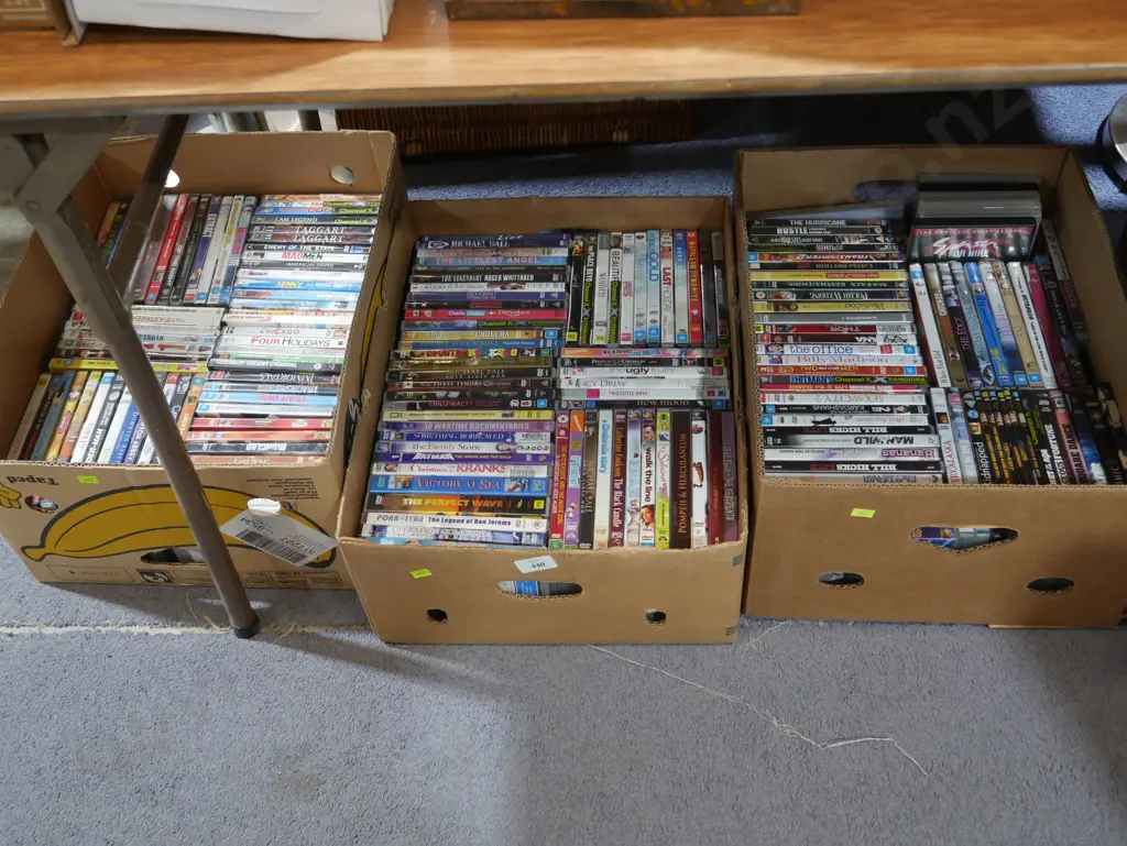 Three boxes of DVDs