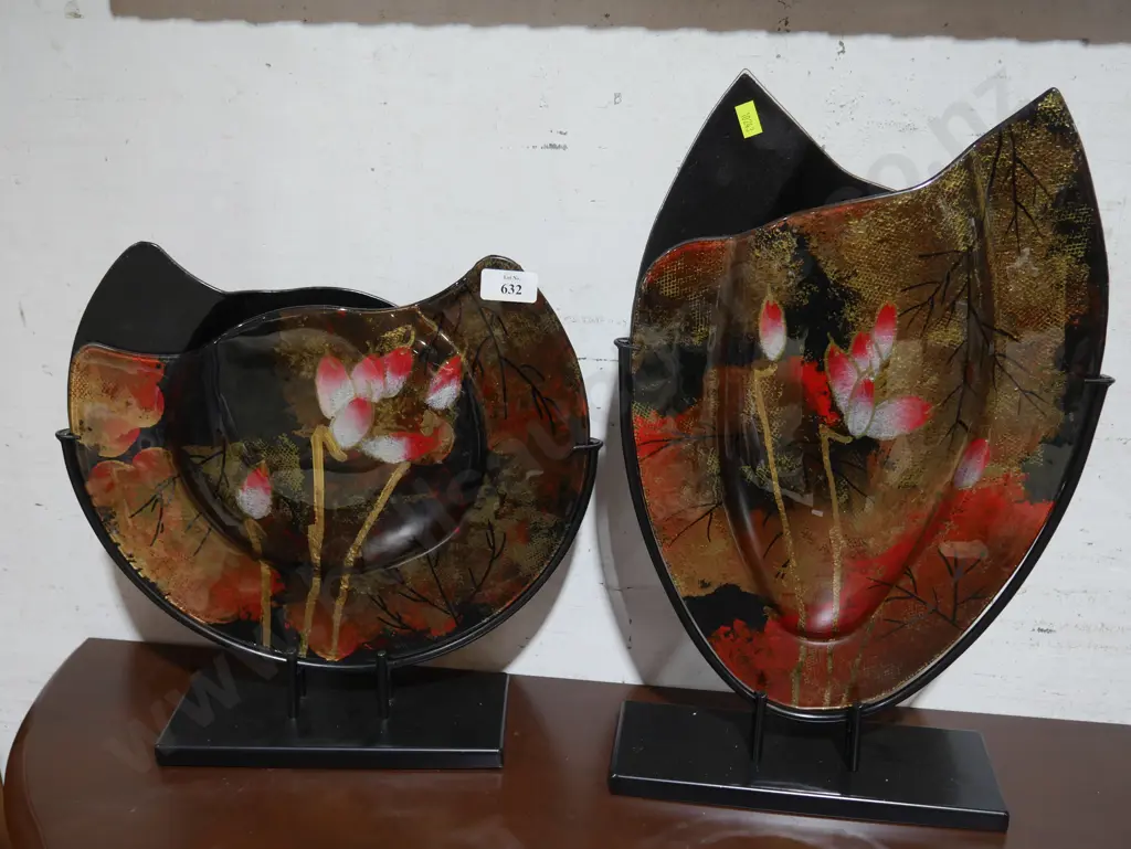 2 glass and metal sculptured vases